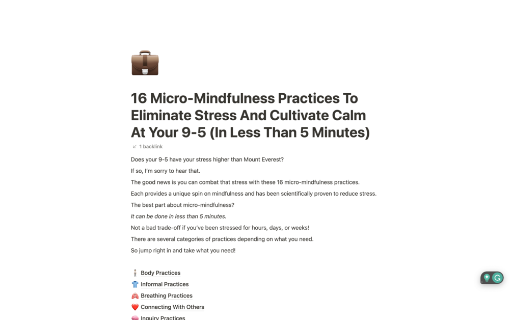 16 Micro-Mindfulness Practices To Eliminate Stress And Cultivate Calm (In Less Than 5 Minutes) At Your 9-5